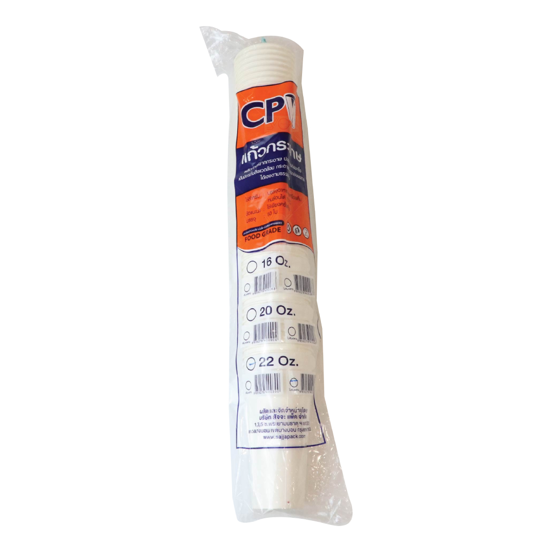 แก้วกระดาษ 22oz. CPW สีขาว (50ใบ/แถว)