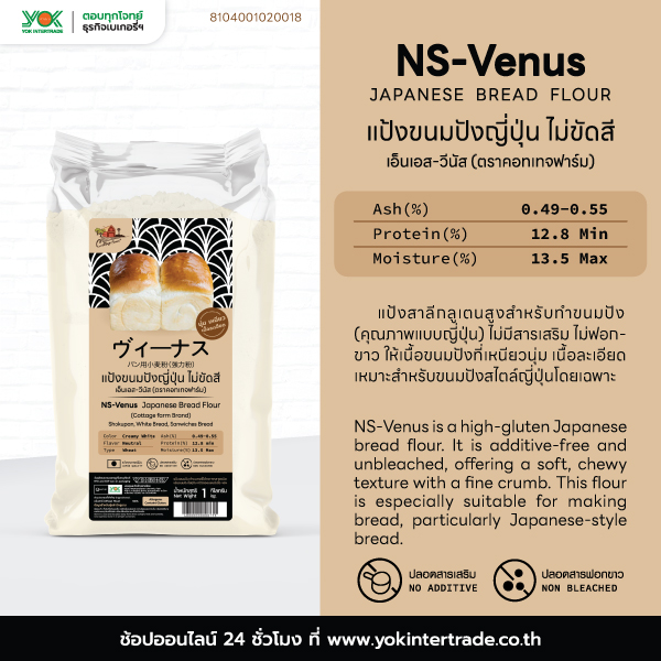 แป้งนิสชิน วีนัส แป้งญี่ปุ่นทำขนมปัง ทำขนมปังได้นุ่มนวล เนื้อสวย โครงสร้างดี สามารถทำครัวซอง ขนมปัง Sourdough และขนมปังที่มีการกรีดลายที่หน้าขนม จะได้ลายที่สวย